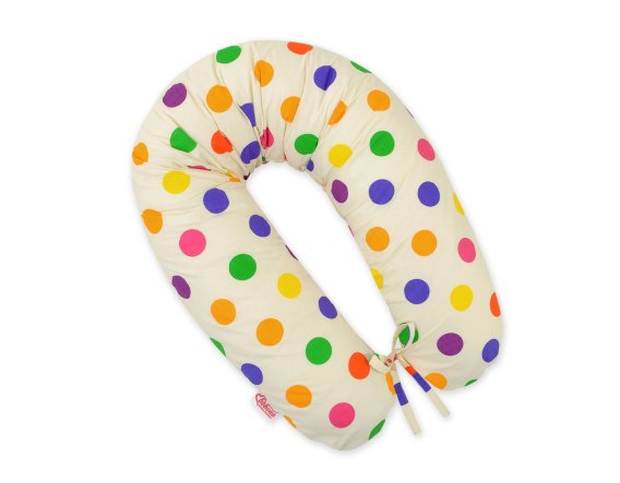 Bawełniana poszewka do poduszki ciążowej Longer - Kolorowe grochy na kremowym