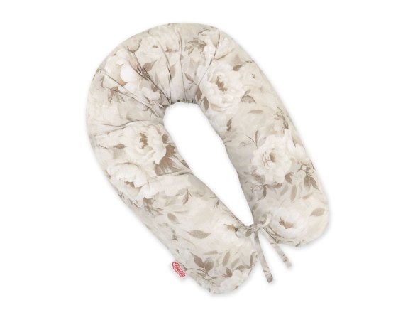 Bawełniana poszewka do poduszki ciążowej Longer - Peonies beige