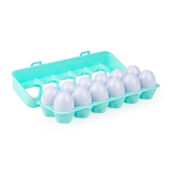 - w zestawie 12 jajek (do rozdzielenia na pół) i zamykane opakowanie na jajka w kształcie wytłaczanki;