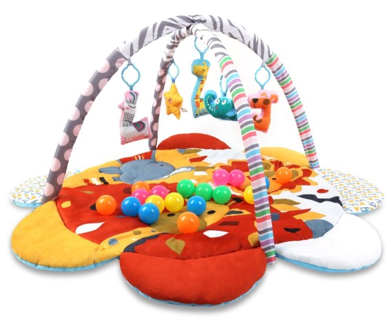 Mata edukacyjna pomaga w nauce chwytania i rozpoznawania kształtów. Zachęca do aktywności i kreatywnej zabawy. Zawieszki rozwijają zmysły wzroku i dotyku, a także koordynację ruchową.