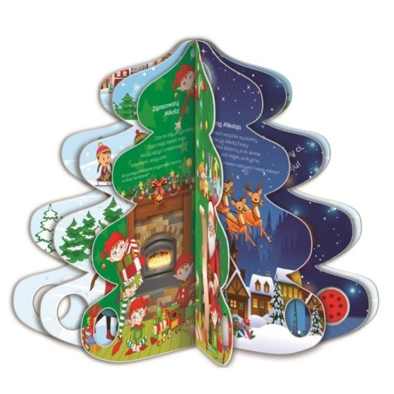 Rozkładana książka w kształcie CHOINKI. Publikacja z MODUŁEM DŹWIĘKOWYM! Do lektury zachęcają SYMPATYCZNE ILUSTRACJE i PROSTE WIERSZYKI. Wprowadza w magiczny NASTRÓJ Bożego Narodzenia. Publikacja zawiera krótkie WIERSZYKI, których bohaterami są DZIECI, ELFY i ŚWIĘTY MIKOŁAJ. Przy każdej historyjce znajduje się PYTANIE dotyczące ilustracji. Książka wyposażona jest w PRZYCISK DŹWIĘKOWY. Po jego naciśnięciu maluszek usłyszy dźwięk świątecznej PIOSENKI. Książka: • wprowadza w nastrój ŚWIĄT BOŻEGO NARODZENIA • zapoznaje z melodią ŚWIĄTECZNEJ PIOSENKI • wspiera WSZECHSTRONNY ROZWÓJ dziecka • rozwija WYOBRAŹNIĘ • wzbogaca SŁOWNICTWO