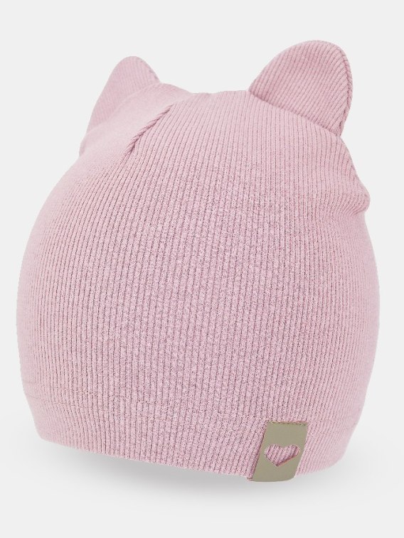 NOVITI CP052-G-02 Czapka prążek podwójny uszy pudrowy róż 40/42 cm