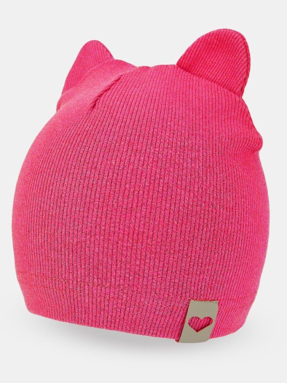 NOVITI CP052-G-03 Czapka prążek podwójna uszy fuksja 44/46 cm