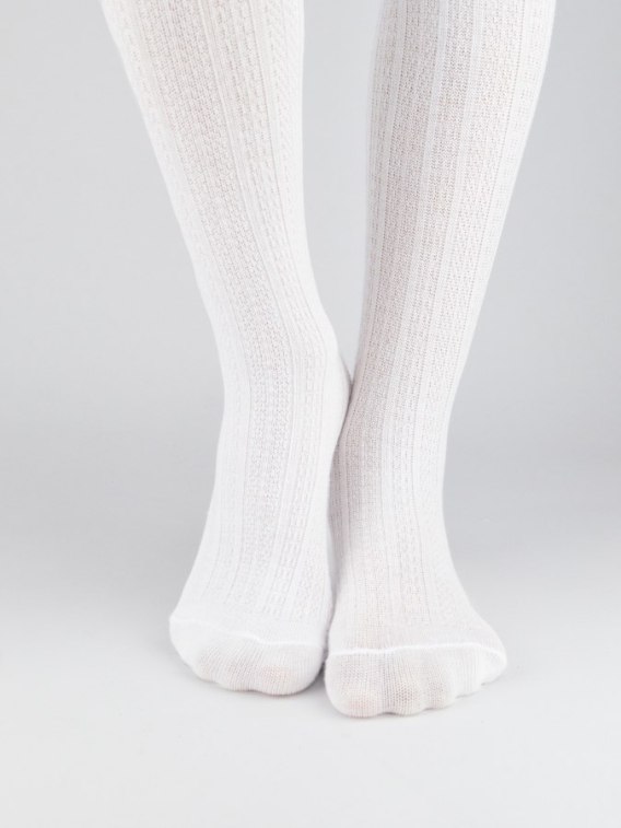 NOVITI RB009-G-01 Rajstopy bawełna żakard wzór prążki białe 68/74