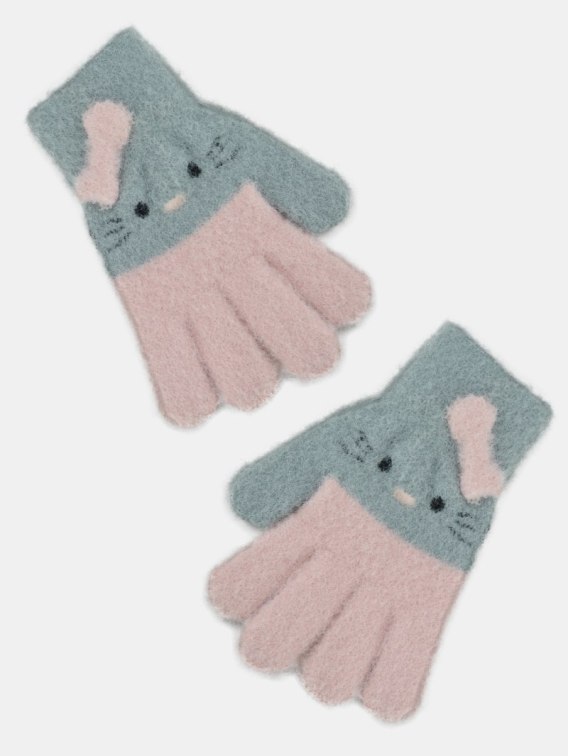 NOVITI RZ046-G-01 Rękawiczki dziewczęce 5P puszyste pojedyncze serce 12