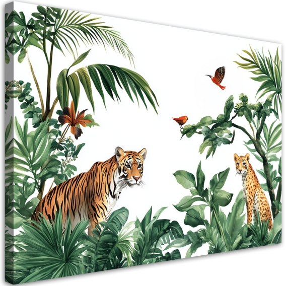 Obrazy dziecięce, Palmy Tygrys Zwierzęta Afryka - 90x60
