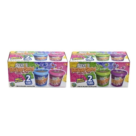 - zapachowy piasek kinetyczny w dwóch kolorach;