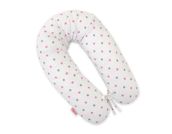 • Poduszka ciążowa Longer dla kobiet w ciąży do spania + zdejmowana poszewka - Gwiazdki szaro-różowe