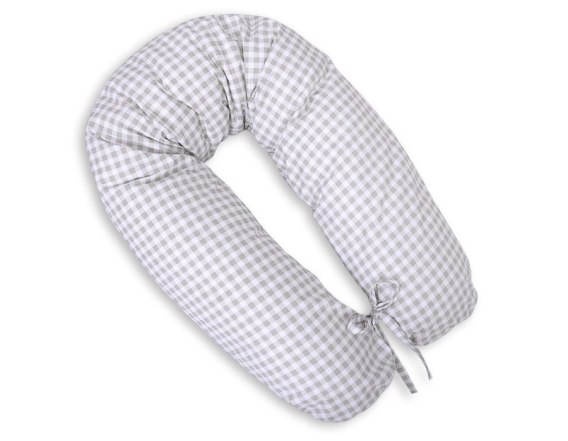 Poduszka ciążowa Longer dla kobiet w ciąży do spania + zdejmowana poszewka - Kratka szara