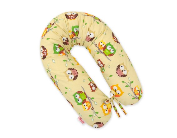 Poduszka ciążowa Longer dla kobiet w ciąży do spania + zdejmowana poszewka - Sowy na kremie