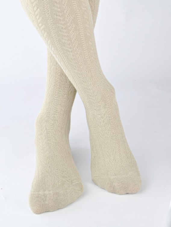 Rajstopy bawełna prążek jodełka jasny beż 104/110 NOVITI RB012-G-02