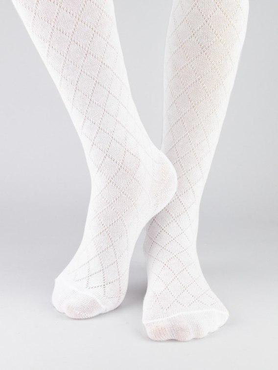 • Rajstopy bawełna żakard wzór romby białe 80/86 NOVITI RB010-G-01