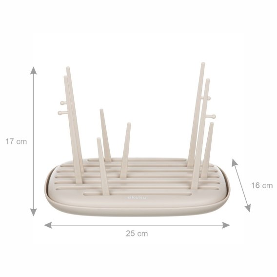Uniwersalna suszarka na butelki i akcesoria to idealny produkt zarówno w domu jak i w podróży. Jest funkcjonalna, pasuje do wszystkich typów butelek, łatwa do złożenia oraz czyszczenia. Została zaprojektowana tak, by mogła łatwo zbierać wodę, można ją postawić w dowolnym miejscu.