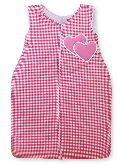 Śpiworek dla dzieci bawełniany M 6-12 mcy TOG 2.5 całoroczny ocieplany serduszka pepitka ciemny róż