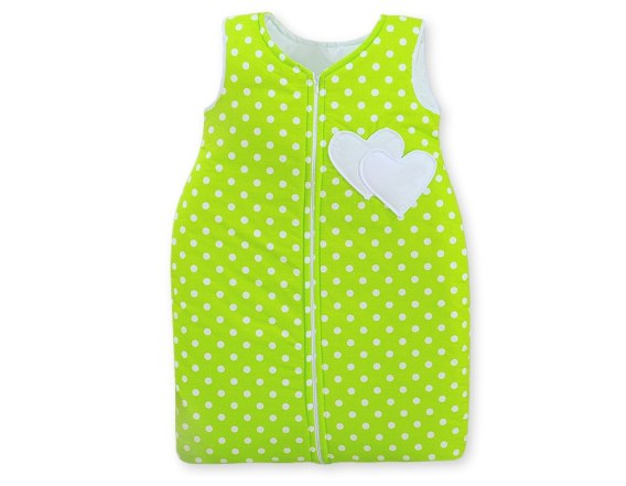 Śpiworek niemowlęcy- Wiszace Serduszka białe grochy na zielonym