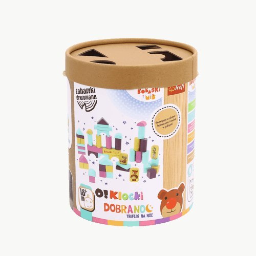 Edukacyjny zestaw 53 kolorowych klocków stworzony we współpracy z psychologiem, z myślą o potrzebach najmłodszych. Kolorystyka klocków zgodna z kolorystyką symboli z książeczek Dobranoc Trefliki Na Noc. Każdy kolor odpowiada za daną czynność, do wykonania przed pójściem