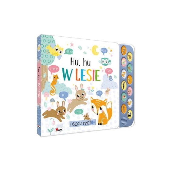 Książeczka sensoryczna - zawiera ELEMENTY DŹWIĘKOWE. Wspiera wszechstronny rozwój dziecka - pobudza ZMYSŁY WZROKU, DOTYKU I SŁUCHU. Prezentuje 12 DŹWIĘKÓW, które można spotkać w lesie. Zawiera krótkie teksty i urocze ilustracje. Książka zabiera małych czytelników DO LASU. Dzieci znajdą w niej krótkie teksty. Wyróżnikiem publikacji jest 12 różnorodnych DŹWIĘKÓW. Dzięki niej maluch dowie się, jakie dźwięki wydają sowa, dzięcioł czy lis.