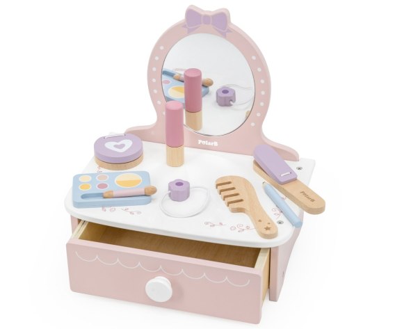 Drewniana toaletka PolarB to połączenie elegancji i edukacyjnej zabawy - idealny prezent dla każdej dziewczynki, która marzy o własnym kąciku piękności.